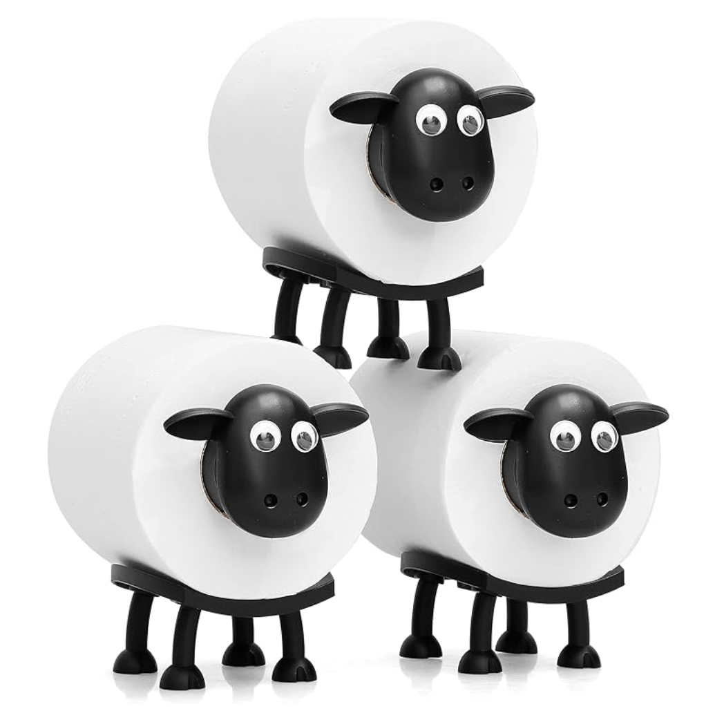 I completely forgot I bought these sheep toilet paper holdersโฆ until one night. At about 2 AM I walked into the bathroom half asleep, turned on the light, and suddenly saw three black sheep staring at me from the corner while holding toilet paper. I froze for a second because my brain couldn't process why there were sheep in my bathroom. Then I remembered. Now I'm fully awake every time I go to the bathroom at night. The sheep are doing an excellent job keeping me alert. ๐๐งป๐